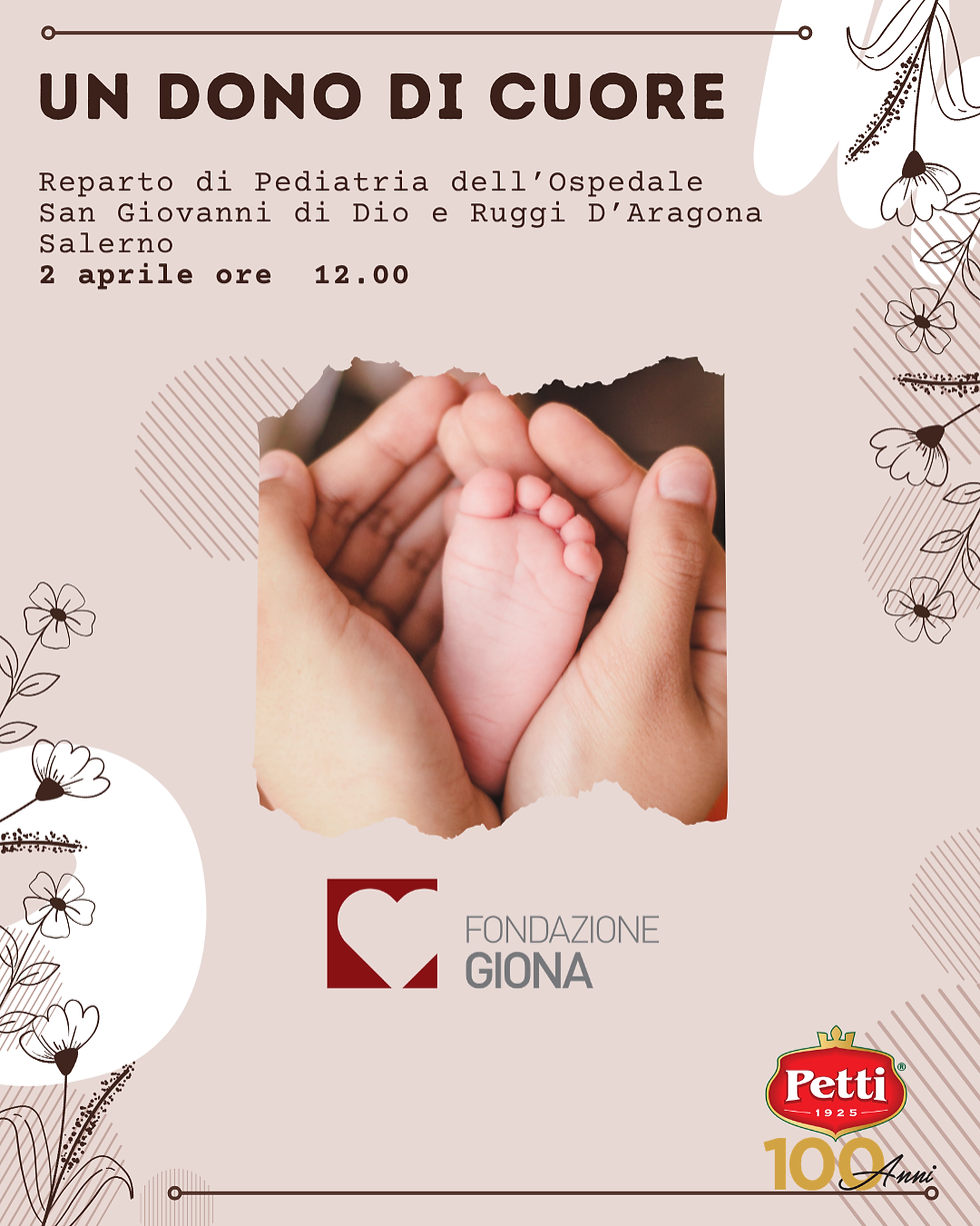 “Un Dono di Cuore: Fondazione Giona, Gruppo Petti S.p.A. e Cavese peril Sociale insieme per la Chirurgia Pediatrica all’ Ospedale San Giovanni diDio e Ruggi d'Aragona”